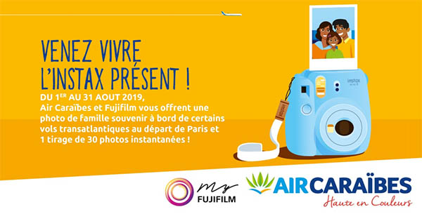 « Immortaliser des moments inoubliables en famille en un flash à 35 000 pieds d’altitude » ? Air Caraïbes, la compagnie « haute en couleurs », et Fujifilm le spécialiste de la photo instantanée couleur, relèvent le défi. Pour cette période estivale, 23 personnels complémentaires de bord (PCB) ont été recrutés par Air Caraïbes pour prendre soin des familles voyageant avec leurs enfants. A bord, ce sont eux qui seront en charge de capturer les sourires des familles grâce aux Instax Fujifilm mis à leur disposition.