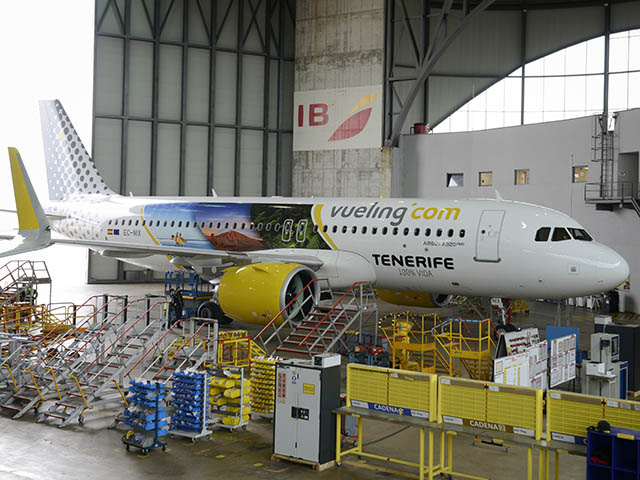 La compagnie aérienne low cost Vueling a assoupli sa politique en matière de bagage, limitant leur nombre en cabine en échange d’un enregistrement gratuit en soute. Un de ses Airbus A320neo porte désormais une livrée dédiée aux paysages de Ténériffe.