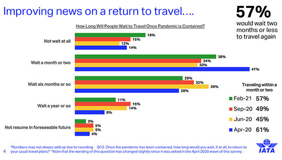 - 56% pensent qu’ils reporteront leurs voyages jusqu’à ce que l’économie se stabilise (contre 65% en septembre 2020)