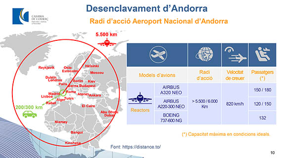 Rappelons que pour rejoindre Andorre actuellement en compagnie aérienne régulière, il faut passer par les aéroports de Toulouse ou Perpignan, ou via l’Espagne par ceux de Barcelone ou Gérone ; la plateforme de La Seu d’Urgell en Catalogne avec sa piste de 1390m est réservée aux appareils plus petits, mais son développement a la faveur du gouvernement.
