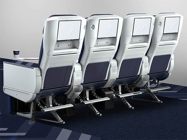 En cabine Economy, les sièges sont également « aux plus hauts standards de confort du marché. Chacun dispose d’une large assise de 43 cm, d’une inclinaison de 119 degrés et d’un espace de 79 cm pour les jambes. Le dossier du siège est ergonomique et offre un maintien latéral renforcé. Un port USB A est aussi disponible ». Ces deux cabines offrent un large écran 4k Haute Définition de 13,3 pouces équipé de Bluetooth, « idéal pour découvrir plus de 1000 heures de divertissement à la demande ».