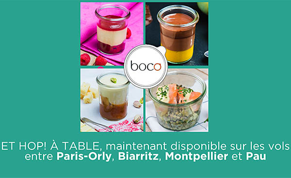 Lancée en mai 2017 sur les liaisons de la filiale régionale d’Air France « La Navette » entre Orly et Bordeaux, Marseille, Nice et Toulouse, l’offre de restauration en partenariat avec BOCO, la chaîne de restaurants bistronomiques proposant des menus conçus par des grands Chefs, est aujourd’hui étendue à trois autres lignes du réseau : les clients ont la possibilité de profiter de cette offre de restauration sur les vols opérés entre Paris-Orly et les aéroports de Montpellier, Biarritz et Pau.