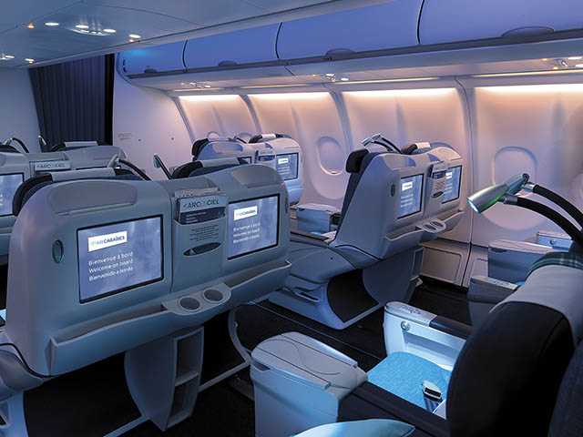 La classe Premium Caraïbes a été reconfigurée avec 7 sièges de front, aux assises élargies (45 cm). L’ensemble des sièges seront désormais équipés de repose-pieds ainsi qu’un repose-jambes complémentaire sur la 1ère rangée. Avec son écran tactile et inclinable de 30 cm, la classe Caraïbes offrira des « conditions de voyage idéales et inégalées pour les allers-retours entre Paris et les Caraïbes ».