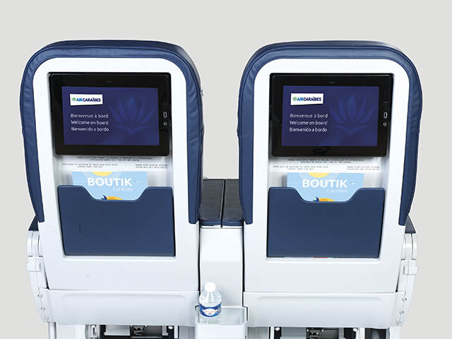 En classes Economie et Premium, Soleil et Caraïbes, les nouveaux sièges seront désormais en cuir, avec des renforcements au niveau des lombaires et sous les genoux pour un plus grand confort. Pour ses cabines, Air Caraïbes a fait appel à la société allemande Zim, reconnue pour la qualité et l’ergonomie de ses assises et qui équipe déjà « des compagnies européennes ou asiatiques de renom ». A bord de ces deux classes, les passagers profiteront des meilleurs systèmes de divertissements du marché, avec des écrans ultra-larges et désormais tactiles. Ils pourront également utiliser en toute sérénité leurs propres appareils (ordinateur, tablette, smartphone) grâce aux nouvelles prises – électriques, USB et audio – dont sont équipés tous les nouveaux sièges.