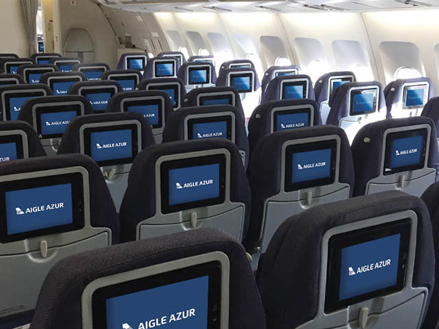 Les A330-200 portent la nouvelle identité visuelle d’Aigle Azur, « dédiée au long courrier et à même de conquérir de nouvelles cibles affaires et loisirs », avec en outre une « évolution en profondeur du produit à bord pour se positionner parmi les meilleurs transporteurs long-courrier ». Au programme : montée en gamme dans toutes les classes avec notamment une Classe Affaires dotée de sièges-lits inclinables à 180° et parfaitement horizontaux, d’un système individuel de divertissement à bord de type VOD de dernière génération dans les 2 cabines, de différentes ambiances lumineuses « mood light » et enfin d’une connectivité internet à bord (dès le mois de juillet).