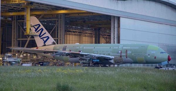L’avionneur européen Airbus a annoncé hier que le premier superjumbo A380, commandé par la compagnie japonaise ANA (All Nippon Airways), est sorti du hall d’assemblage à Toulouse.