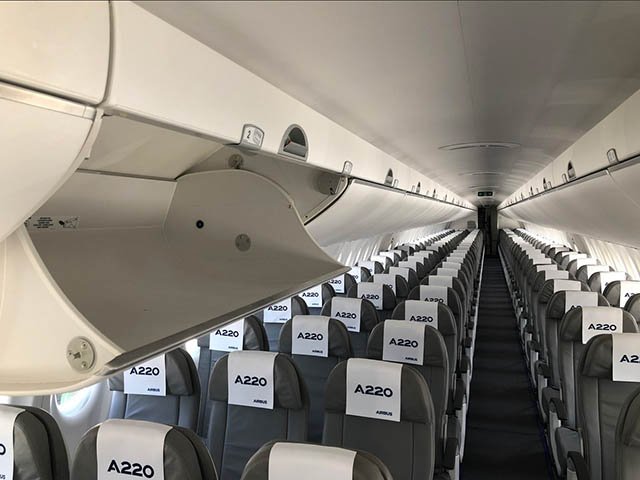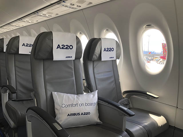 La compagnie américaine JetBlue Airways lui a donné raison quelques heures plus tard : dans le cadre du remplacement de ses soixante Embraer 190, elle a annoncé la commande ferme de 60 A220-300 livrables à partir de 2020, plus 60 options pour des livraisons à partir de 2025 (et la possibilité d’en convertir certains en A220-100) ; tous seront assemblés à Mobile en Alabama. La configuration n’est pas précisée mais sera de toute façon supérieure à celle des E190 (100 places dont 16 « avec plus d’espace »). Dans le cadre de cet accord, JetBlue a également modifié son carnet de commandes chez Airbus, notamment en convertissant sa commande de 25 A320neos en autant d’A321neo et en « ajustant leur calendrier de livraison » (elle attend désormais 85 A321neo). « Nous sommes en train de faire évoluer notre flotte pour l’avenir de JetBlue, et l’impressionnante gamme et l’économie de l’A220-300 nous offrent la flexibilité désirée et soutiennent nos priorités financières et opérationnelles », a déclaré dans un communiqué Robin Hayes, directeur général de JetBlue. À l’approche de son 20e anniversaire dans deux ans, l’A220, combiné à la flotte d’A320 (130 en service) et d’A321 (58 sur 64 attendus) « nous aidera à offrir la meilleure expérience à bord et à atteindre nos objectifs financiers à long terme », a ajouté le dirigeant.