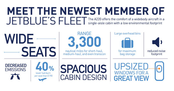 La sélection par JetBlue de l’A220 en plus des appareils de la famille A320 « est une formidable reconnaissance – à la fois de l’A220 et de la façon dont ces deux avions peuvent travailler ensemble pour offrir flexibilité et expérience client » Schulz, directeur commercial d’Airbus. JetBlue sera ainsi « en mesure de tirer parti de l’efficacité imbattable de l’A321neo et de l’A220-300, tout en profitant des cabines les plus spacieuses et les plus agréables pour les clients de tous les appareils de leur catégorie. Chris Calio, président des moteurs commerciaux de Pratt & Whitney, se dit de son côté « honoré par la confiance de JetBlue dans le choix de l’avion A220-300 qui vient s’ajouter à leur commande existante de la famille A320neo, tous deux animés par les moteurs Pratt & Whitney GTF ». Le motoriste fournit à JetBlue des moteurs V2500 depuis son lancement en 2000.