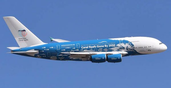 C est vraiment une belle déco sur cet A380, ca change du blanc avec le logo de la compagnie. Mais ca doit surement couter plus cher…