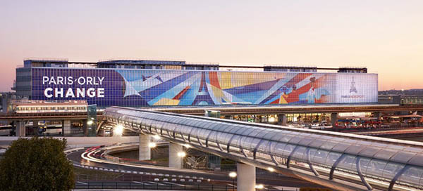 Pas de problème de ce genre à l’aéroport de Paris-Orly, où l’intégralité des 3200 m² de la façade du Terminal Sud est recouverte d’une fresque monumentale de l’artiste italien Ray Oranges. Associée au message “Paris-Orly Change”, cette fresque de 17 mètres de haut et 202 mètres de large, soit l’équivalent de 16 terrains de tennis, recouvre 750 fenêtres et doit « mettre à l’honneur la transformation en cours de l’aéroport ». Cette œuvre d’art contemporaine présente dès aujourd’hui aux passagers et aux salariés « une vision projective et onirique » de ce futur Paris-Orly. D’ici le mois d’avril 2019, l’aéroport ouvrira un nouveau bâtiment qui reliera les deux terminaux historiques pour créer un terminal unique.