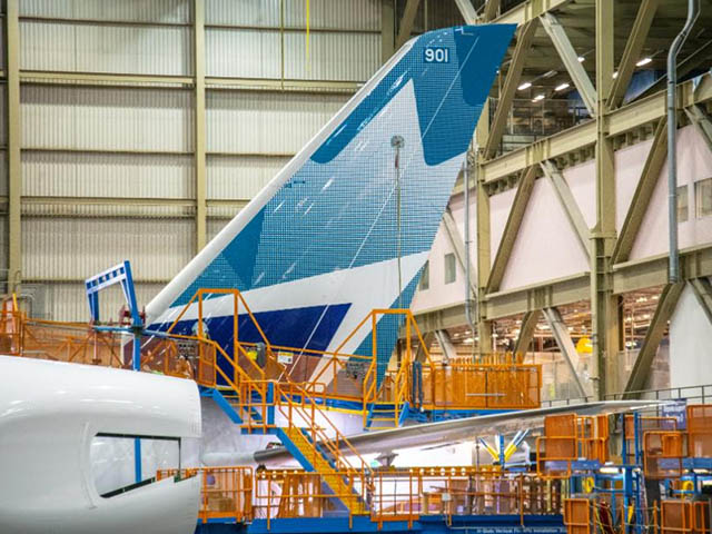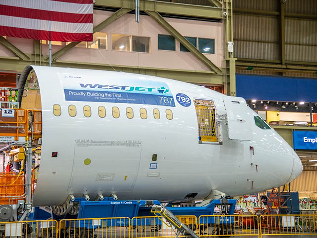Au Canada, le premier des dix Boeing 787-9 Dreamliner commandés par WestJet (avec 10 options) commence à ressembler à un avion dans la FAL d’Everett, dan sl’Etat de Washington. Ce premier Dreamliner, pouvant accueillir 16 passagers en classe Affaires, 28 en Premium et 260 en Economie et présenté en mai dernier, devrait entrer en service le 28 avril 2019 entre sa base de Calgary et l’aéroport de Londres-Gatwick, avant d’être déployé le 17 mai vers Paris-CDG puis le 1er juin vers Dublin.