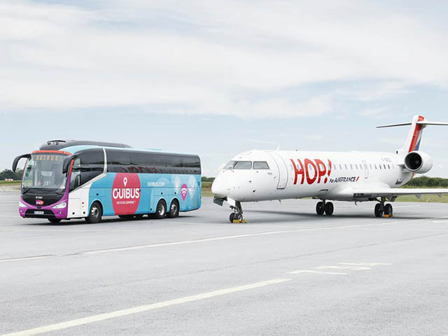 Dès le 4 décembre 2018, six villes seront reliées par Ouibus au réseau aérien de la filiale régionale d’Air France via l’aéroport de Lyon-Saint Exupéry : Grenoble, Saint-Étienne, Saint-Chamond, Chambéry, Aix-les-Bains et Vienne. Cette offre multimodale avion+route est une première en France, souligne HOP! dans un communiqué, et les réservations sont ouvertes depuis mercredi : les clients de la compagnie aérienne peuvent réserver leur voyage de bout en bout, intégrant à leurs vols un tronçon routier ville/aéroport/ville, opéré par les bus Ouibus. Au total, plus de 4400 trajets HOP!+Ouibus seront proposés par semaine. Ces trajets en bus seront proposés pour l’ensemble des plages horaires des vols HOP!, avec un temps de correspondance entre l’avion et le bus « optimisé pour permettre une expérience intermodale réussie ». Les clients peuvent réserver leur billet jusqu’à 72 heures avant le départ sur le site hop.com, auprès des agences de voyage ou encore par téléphone auprès des services de vente à distance Air France et HOP!.