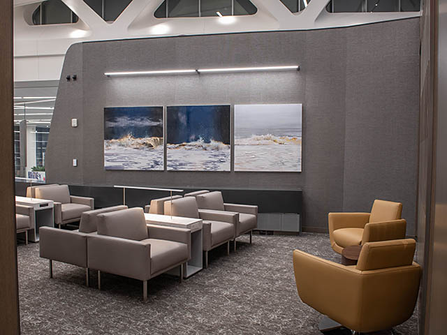 Commodément situé après le point de contrôle de sécurité, près des portes d’embarquement 49, 50 et 51 de la compagnie nationale canadienne, ce nouvel espace est le premier salon d’affaires à ouvrir ses portes dans la nouvelle aérogare B de LaGuardia. Surplombant le hall, le nouveau salon Feuille d’érable peut accueillir jusqu’à 126 personnes « dans un cadre raffiné mariant le design et l’art canadiens et un style métropolitain moderne ». D’une superficie de 137 m2, il propose notamment un bar libre-service offrant un vaste choix de boissons, dont des vins canadiens et des cafés de spécialité Lavazza, un centre d’affaires et des sièges confortables avec vue sur la piste. Les voyageurs d’affaires qui souhaitent travailler sur place peuvent aussi profiter d’un « cybercomptoir » doté d’ordinateurs et d’une imprimante couleur, d’un accès Wi-Fi gratuit, ainsi que de plus de 7000 journaux et magazines numériques, accessibles au moyen de l’application PressReader. Le salon sera ouvert sept jours sur sept.