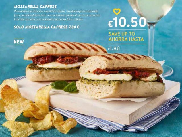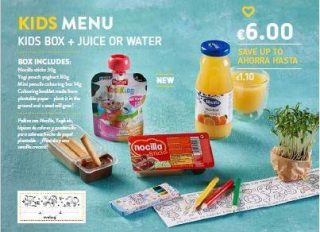 Son contenu est directement en lien avec la saison printemps-été. Deux nouveaux sandwichs ont ainsi été ajoutés : le nouveau “Mozzarella Caprese”, adapté aux végétariens, composé d’un panini à la mozzarella, tomate séchée et pesto, ainsi que le “Ciabatta au thon”, un sandwich au thon, laitue, mayonnaise et œufs sur du pain ciabatta. Compagnie low cost oblige, tous les menus à bord sont payants (environ 10 euros pour un menu comprenant un snack, un sandwich et une boisson).