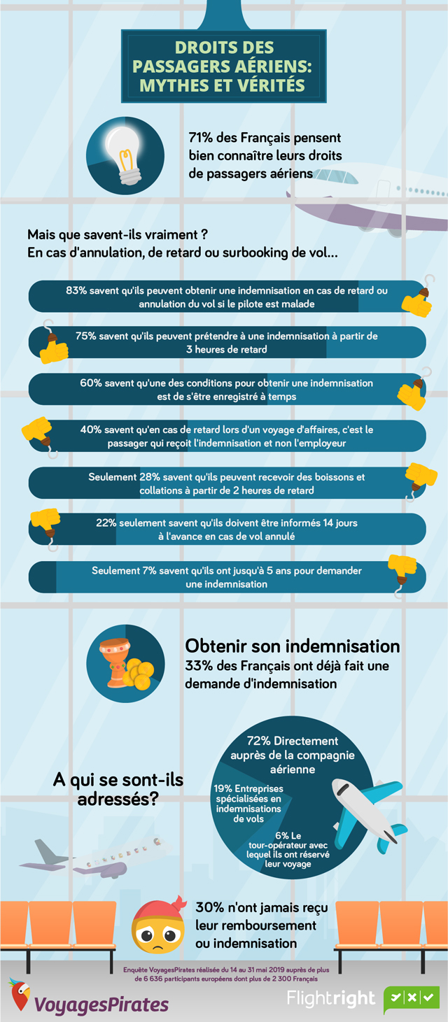 Les Français connaissent-ils bien leurs droits en tant que passagers ? Les sites VoyagesPirates et Flightright ont mené une étude auprès de 6636 Européens dont 2338 Français pour évaluer leurs réelles connaissances en la matière.