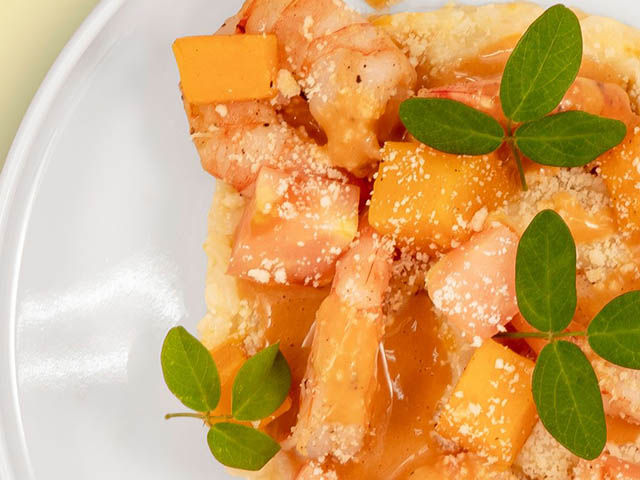 – Risotto de crevettes, sauce crustacés au Giromon
