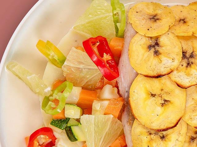 – Dorade en écaille de banane et son écrasé d’igname