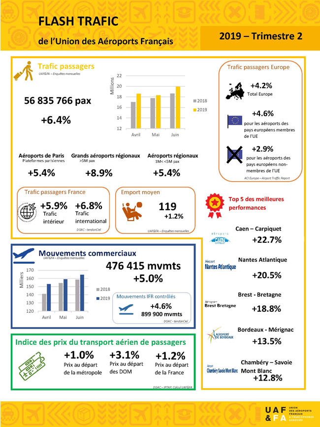 L’Union des Aéroports Français (UAF) publie son rapport du trafic passager au 2e trimestre 2019, annonçant une progression de 6,4% par rapport au même trimestre de l’année dernière.
