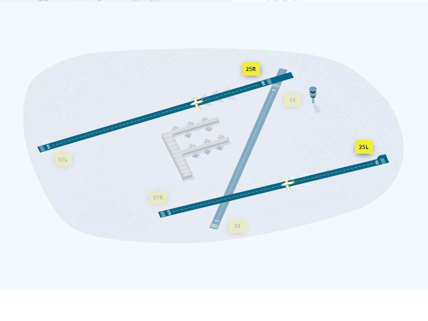 Avant la rénovation et la fermeture de la piste, des travaux préparatoires doivent être effectués à l’intersection des pistes 25R et 19. Suite à ces travaux préparatoires, l’utilisation des pistes de Brussels Airport sera différente des conditions normales. Des informations sur l’utilisation des pistes en temps réel sont disponibles en permanence sur le site du contrôle aérien www.batc.be.
