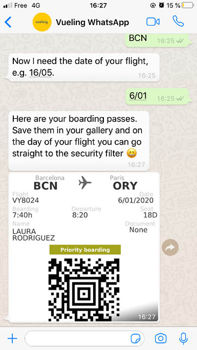 L’assistant virtuel de la spécialiste espagnole du vol pas cher, développé par la compagnie aérienne avec l’entreprise d’Intelligence Artificielle conversationnelle Mindsay, est une première mondiale dans le secteur aérien, et est désormais disponible en espagnol et en anglais. Cet assistant virtuel permet au passager d’effectuer directement sur son smartphone via WhatsApp son enregistrement en ligne, d’obtenir ses cartes d’embarquement et de consulter l’état des vols en temps réel. L’assistant virtuel répond aux questions les plus fréquentes des clients de Vueling, telles que des demandes d’information sur la politique de bagage. Il est aussi capable de « passer de l’anglais à l’espagnol, et vice-versa, au cours d’une même conversation sur demande de l’utilisateur ». Le numéro d’accès WhatsApp à l’assistant virtuel Vueling est le même pour les langues anglaise et espagnole : +34 682 881 770.