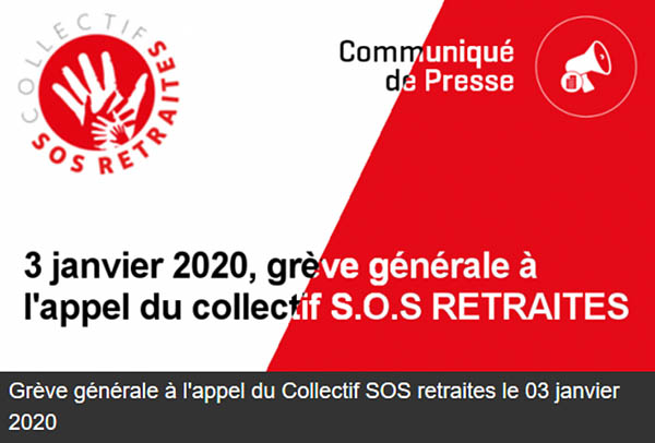 Deux syndicats de pilotes et d’hôtesses de l’air et stewards ont déposé un préavis de grève à partir du 3 janvier toujours à propos de l’impact sur la CRPN du projet de réforme des retraites, les premiers demandant des garanties sur un départ à taux plein et les seconds réclamant toujours la prise en compte la pénibilité de leur métier.