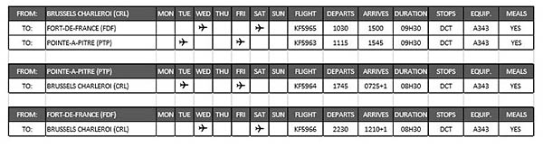 La compagnie aérienne Air Belgium proposera l’hiver prochain au départ de Charleroi des liaisons directes à l’aller et au retour vers les îles de la Martinique et de la Guadeloupe