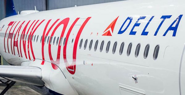 Lors d’une célébration de ce partage des bénéfices dans sa base à l’aéroport d’Atlanta, les dirigeants de Delta ont dévoilé « un autre symbole de l’appréciation de la société » : une livrée personnalisée avec les 90.000 noms d’employés, accompagnée d’un message selon lequel l’A321 (N391DN) est « dédié aux meilleurs employés et clients du monde ». Le message de remerciement personnalisé a été conçu, produit et installé en interne par des gens de Delta. Le processus – qui comprenait 48 panneaux de décalcomanies personnalisés – a pris plus d’une semaine pour se terminer à l’imprimerie et au hangar Delta TechOps à Atlanta.