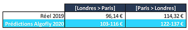 Le 31 janvier 2020, le Royaume-Uni et l’Union Européenne ont signé un Brexit incluant une période de transition de 11 mois durant laquelle ils garantissent inchangées les formalités administratives liées à la circulation des voyageurs. Il n’y aura donc aucun changement notable pour les voyageurs souhaitant traverser la Manche d’ici le 31 décembre. L’algorithme d’Algofly, « entrainé pour analyser les variations de prix et les ajustements d’offres et de demandes », prédit des changements à d’autres niveaux : les variations de demandes et d’offres liées aux incertitudes du Brexit ont des conséquences directes sur le prix des billets d’avion. Depuis 2016, s’envoler Outre-manche a toujours coûté en moyenne moins cher pour un Britannique que pour un Français ; l’année 2020 n’échappera pas à la règle selon les calculs de l’outil prédictif d’Algofly, qui s’attend à une hausse de tarifs comprise entre 7 et 20%, aussi bien depuis les aéroports de Londres que depuis ceux de Paris. Prix moyen pour un vol A/R :
