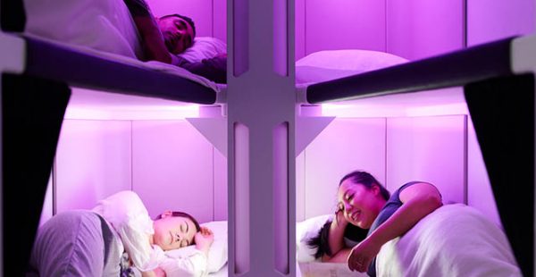 Après le Skycouch lancé en 2011 et qui transforme trois sièges de classe Eco en couchette pour deux, la compagnie nationale de Nouvelle Zélande a dévoilé le 26 février 2020 le résultat de trois années de recherche et développement » : Skynest (le nid dans le ciel) est présenté en photo comme deux fois deux couchettes superposées, mais chaque unité pourra accueillir jusqu’à six « pods » (modules de sommeil) mesurant au moins 200cm x 58cm. Leur future position dans l’avion n’est pas encore déterminée « mais sera en classe Economie » selon le communiqué d’Air New Zealand, qui précise aussi que le produit inclura « un oreiller pleine taille, des draps et une couverture, des bouchons d’oreille ainsi que des rideaux d’intimité et un éclairage conçu pour le sommeil ». Sont encore à l’étude « d’autres fonctionnalités » telles qu’une lampe de lecture séparée, une prise USB pour les appareils personnels et une ventilation.