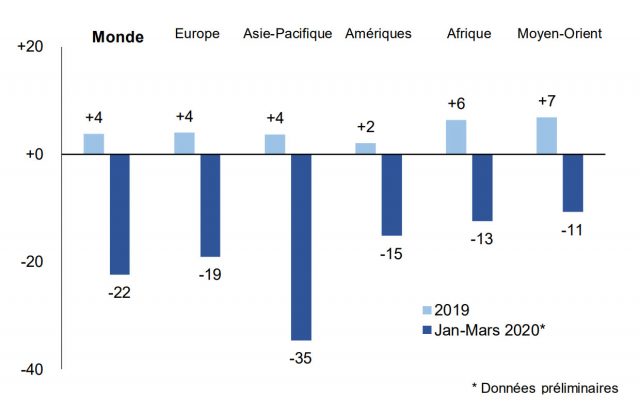 Selon l’Organisation mondiale du tourisme (OMT) des Nations-Unies, la crise du coronavirus a provoqué une baisse de 22 % des arrivées de touristes internationaux au cours du premier trimestre 2020, et pourrait causer une chute jusqu’à 60%, voire même 80%, sur l’ensemble de l’année, si la pandémie perdure.