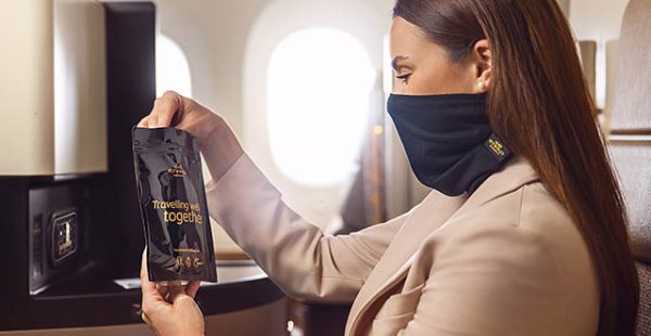 Dans le cadre du programme Etihad Wellness présenté début juin pour lutter contre la pandémie de Covid-19, la compagnie nationale des Emirats Arabes Unis a dévoilé de nouveaux équipements de protection personnels pour les classes avant. Le cache-cou « à utiliser tout au long de leur voyage et au-delà », souple et réutilisable, a été traité avec MicrobeBARRIER ™, un traitement antimicrobien à large spectre, testé en laboratoire et capable de réduire la présence de germes dans les tissus. Avec cette couche protectrice longue durée, les masques sont lavables et réutilisables, « et surtout écologiques » selon le communiqué d’Etihad Airways.