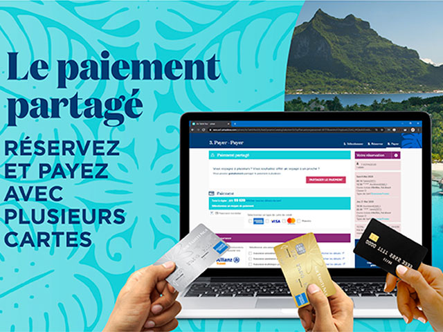 Air Tahiti Nui met aussi désormais à disposition de ses clients un nouveau service de paiement partagé. La compagnie propose le paiement avec plusieurs cartes bancaires permettant ainsi de réserver et payer le voyage en groupe (paiement divisé à plusieurs) ou d’organiser ses transactions bancaires (paiement avec plusieurs cartes). Cette option de paiement est valable sur toutes les réservations effectuées sur le site internet de la compagnie et cela jusqu’à 5 jours avant la date du départ. Une fonctionnalité gratuite, facile et rapide accessible en seulement quelques clics pour réserver et payer un voyage à plusieurs et sans avancer les frais.