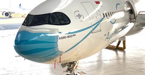La compagnie aérienne Garuda Indonesia a affublé un de ses Airbus A330neo d’un masque sur le nez, alors que la pandémie de Covid-19 continue de s’étendre dans les 4000 îles de l’archipel.