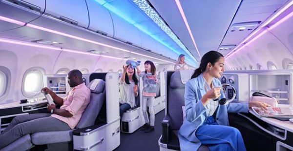 *des hublots au volet entièrement intégré, offrant aux passagers plus d’espace et une vue plus dégagée, « évoquant le ressenti de l’A350 » ;