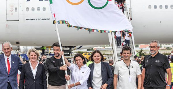 Le 9 aout 2021 peu avant 14h00, le Boeing 777-300ER F-GSQY de la compagnie nationale française a atterri à l’aéroport de Paris-CDG, en provenance de Tokyo-Haneda. Avec à son bord la maire de Paris Anne Hidalgo, qui avait reçu le drapeau olympique lors de la cérémonie de clôture des Jeux de Tokyo : ce drapeau « est le symbole que maintenant, réellement, les Jeux de Paris arrivent ». « Que de chemin parcouru depuis l’obtention des Jeux avec les équipes de #Paris2024. Vivons désormais l’esprit olympique jusqu’à la cérémonie d’ouverture le 26 juillet 2024 », a-t-elle déclaré sur les réseaux sociaux.