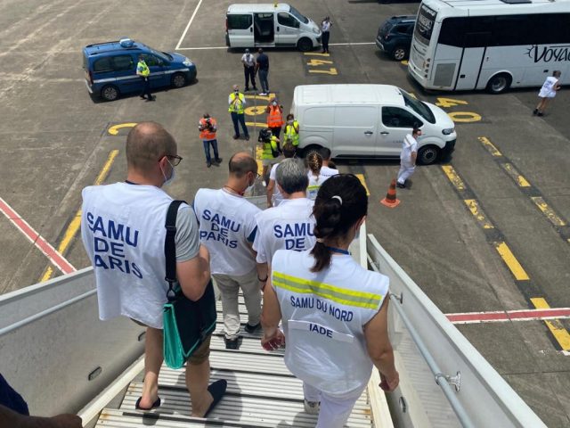 L’Agence régionale de Santé (ARS) de la Guadeloupe a publié des images de la troisième évacuation sanitaire réalisée par Air Caraïbes mardi dernier, transportant 6 malades et 25 personnels de santé les accompagnant.