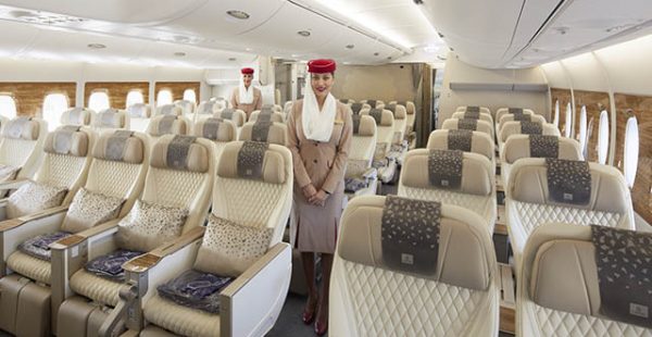 Sur le Boeing 777 d’Emirates, 5 rangées de sièges de classe Éco situées juste derrière la classe Affaires seront supprimées pour installer 24 sièges Premium, disposés là aussi en 2+4+2. La cabine Premium devrait en outre être disponible de base dans certains 777X et dans les futurs A350 et 787.