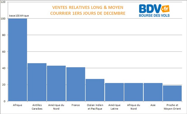 Au niveau de la distribution, comme chez le spécialiste du billet d’avion bon marché Bourse-des-vols.com par exemple, les réservations en ce début du mois de décembre se résument à des destinations « affinitaires , ethniques ou festives » : « Quand plus rien ne se vend, ça se vend encore. En moyen ou long courrier, se vendent encore au départ de la France métropolitaine les DOM-TOM, l’Afrique noire et l’Amérique du Nord, et Dubaï comme destination de loisirs pour les fêtes », témoigne le voyagiste.