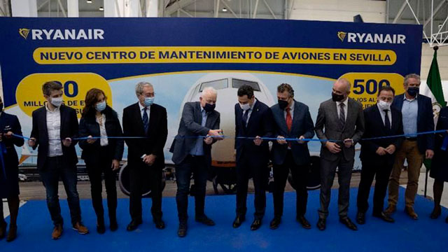 Ryanair a inauguré mercredi son centre de maintenance d’avions, nouvellement agrandi, à l’aéroport de Séville-San Pablo et a annoncé en même temps la création de 250 emplois, notamment des ingénieurs, des mécaniciens et du personnel d’assistance agréés, portant ainsi son personnel local à 500 personnes d’ici 2023.