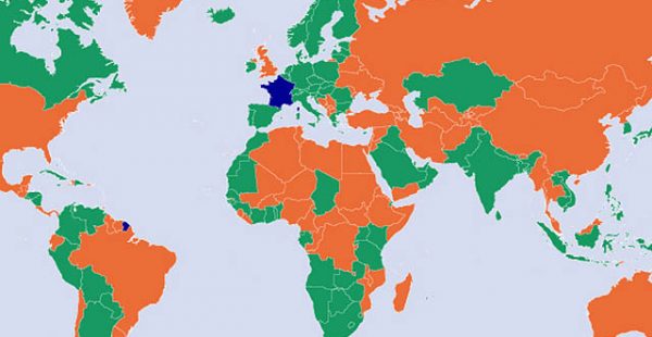 La liste des pays verts est donc désormais la suivante : pays de l’espace européen (États membres de l’Union européenne ainsi que Andorre, l’Islande, le Liechtenstein, Monaco, la Norvège, Saint-Marin, la Suisse et le Vatican), ainsi que l’Afrique du Sud, l’Angola, l’Arabie Saoudite, l’Argentine, les Bahamas, le Bahreïn, le Bangladesh, le Bénin, la Bolivie, le Botswana, le Cambodge, le Canada, Cap Vert, la Colombie, les Comores, la Côte d’Ivoire, la Corée du Sud, Cuba, Djibouti, les Émirats arabes unis, l’Équateur, Eswatini, les Fidji, le Gabon, le Ghana, la Guinée, la Guinée équatoriale, la Guinée Bissau, le Honduras, Hong-Kong, l’Île Maurice, l’Inde, l’Indonésie, l’Irak, la Jamaïque, le Japon, le Kazakhstan, le Kenya, le Koweït, le Laos, le Lesotho, le Maroc, la Mauritanie, la Namibie, le Népal, le Nicaragua, la Nouvelle-Zélande, Oman, l’Ouganda, le Pakistan, le Paraguay, le Pérou, les Philippines, le Qatar, la République dominicaine, le Rwanda, Saint-Christophe-et-Niévès, le Salvador, les Samoa, le Sénégal, le Sri-Lanka, Taïwan, la Tanzanie, le Tchad, le Togo, le Vanuatu, le Venezuela, le Vietnam, la Zambie et le Zimbabwe.