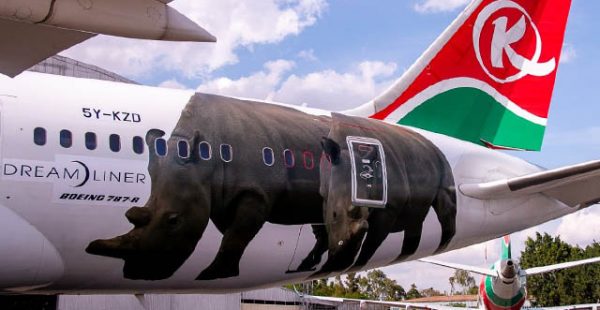 Basée à l’aéroport de Nairobi-Jomo Kenyatta, la compagnie nationale du Kenya utilise deux de ses avions pour faire la promotion des espèces en danger sur son réseau de 41 destinations. Le Boeing 787-8 Dreamliner immatriculé 5Y-KZD arbore actuellement l’image d’un rhinocéros noir, l’un des rares survivants en Afrique de l’est, dans le cadre d’une collaboration avec la réserve Ol Pejeta où résident également les deux derniers rhinocéros blancs du Nord (Najin et Fatu). Eux aussi avaient eu l’honneur de figurer sur le fuselage du Dreamliner de Kenya Airways.
