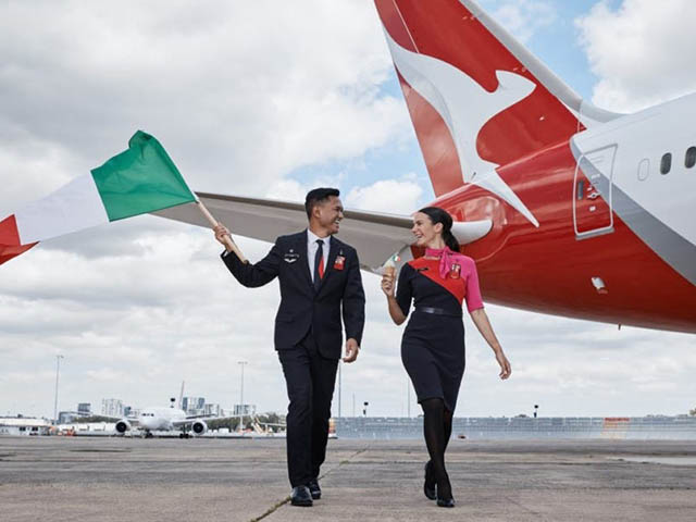 Depuis le 22 juin et jusqu’au 6 octobre 2022, la compagnie nationale australienne propose trois vols par semaine entre sa base à Sydney-Kingsford Smith et l’aéroport de Rome-Fiumicino, opérés via Perth (90 minutes d’escale) en Boeing 787-9 Dreamliner pouvant accueillir 42 passagers en classe Affaires, 28 en Premium et 166 en Economie. Les départs de Perth sont programmés lundi, mercredi et samedi à 22h20 pour arriver le lendemain à 8h45, les vols retour quittant l’Italie mardi, jeudi et dimanche à 10h50 pour se poser le lendemain à 16h05.