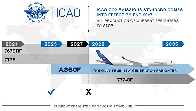 Les 777-XF et 350F mettront fin aux 747F…il restera peut être les deux 747 Air Force One. A partir de 2028, les 747F et 777F 767ERF auraient de toute façon été interdits à la production, suite à la norme adoptée par l’OACI en 2017.
