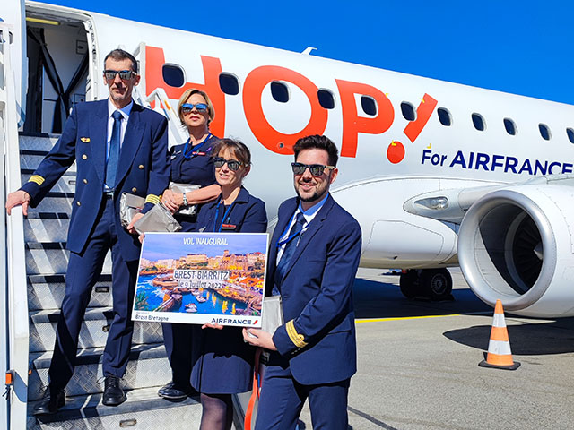 Après avoir lancé vendredi les vols saisonniers vers Nice, la compagnie nationale française propose depuis le 9 juillet et jusqu’au 27 aout 2022 un vol par semaine entre Brest-Bretagne et l’aéroport de Biarritz-Pays Basque, opéré par HOP en Embraer 170 pouvant accueillir 20 passagers en classe Affaires et 56 en Economie. Les départs sont programmés le samedi à 11h15 pour arriver à 12h35, les vols retour quittant le Pays Basque à 17h55 pour se poser à 19h15. Un vol supplémentaire est mis en place le lundi 15 aout (départ de Brest à 14h30, retour à 16h30) « profiter du long week-end de l’Assomption ».