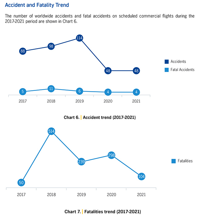 Le « Rapport sur la sécurité 2022 » de l’organisme des Nations Unies présente une analyse détaillée de la performance mondiale en matière de sécurité de l’aviation civile pour les opérations de 2021. Les résultats du rapport révèlent une diminution de 9,8% du taux mondial d’accidents pour l’année dernière par rapport à 2020, passant de 2,14 à 1,93 par million de départs. Pendant ce temps, les décès en 2021 ont chuté de 66% par rapport au nombre de 2020, bien que le nombre d’accidents mortels soit resté constant à quatre.