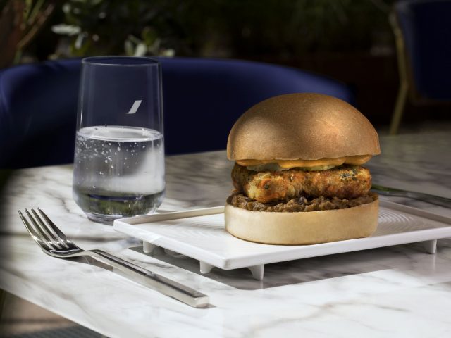 Dans les salons long-courriers de Paris-Charles de Gaulle situés au terminal 2E, halls K, L et M, les clients peuvent désormais déguster le nouveau « Burgal » signé Ducasse Paris, alternative 100% végétale, saine et locavore grâce à des céréales et légumes d’origine française. Celui-ci est composé d’un pain brioché vegan, d’une galette de légumes et légumineuses, d’une mayonnaise épicée vegan également, de pickles et d’un condiment de caviar d’aubergine.