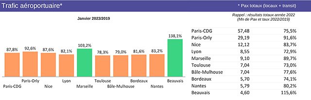 La reprise se confirme en janvier dans les aéroports français, Beauvais et Marseille en particulier ayant dépassé le niveau de trafic enregistré en janvier 2019, avant la pandémie de Covid-19.