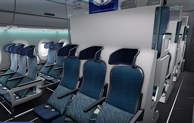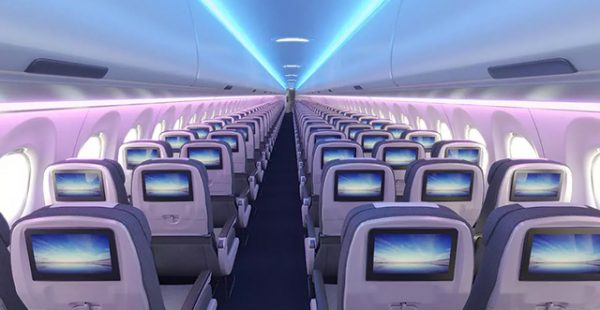 Airbus va proposer son concept de cabine Airspace dans les monocouloirs de la famille A220, avec en particulier des bacs plus grands, tandis que pour les gros-porteurs le concept « chaise longue » de classe Economie sur deux étages continue de faire le buzz.