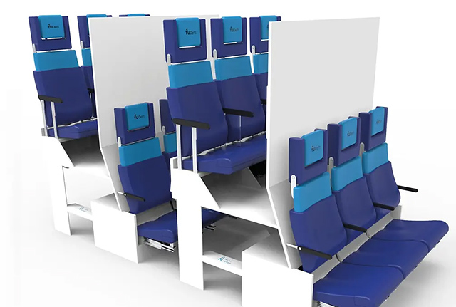 Accueilli avec incrédulité il y a un an, le concept « Chaise longue » développé par Alejandro Núñez Vicente s’est depuis fait remarquer lors des Crystal Cabin Awards en cours, et est présent à l’AIX 2023. Imaginé pour la rangée centrale de classe Economie des gros-porteurs, le concept place les sièges sur deux demi-étages en décalé, grâce à la suppression des compartiments à bagage. Les sièges inclinables à 125% offrent apparemment un espace suffisant pour étendre les jambes, au moins au niveau inférieur. L’ingénieur en design industriel américain évoque le Boeing 747 (plus produit) ou l’Airbus A330 parmi les gros-porteurs aptes à accueillir son concept, et des discussions en cours avec « les plus grands acteurs du marché » sur ce projet visant par exemple les personnes de grande taille, moins confortables dans les rangées actuelles de classe Economie – sans oublier l’obsession de certaines compagnies aériennes à caser le plus de monde possible dans leurs avions…