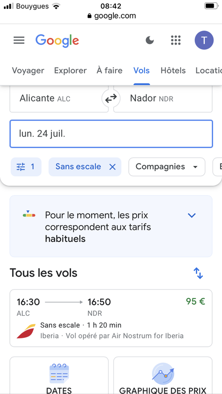 Durant la même saison Iberia propose ALC-NDR a 90€ ?
